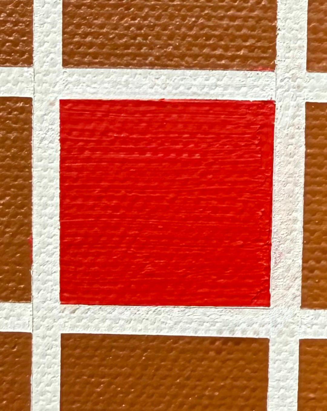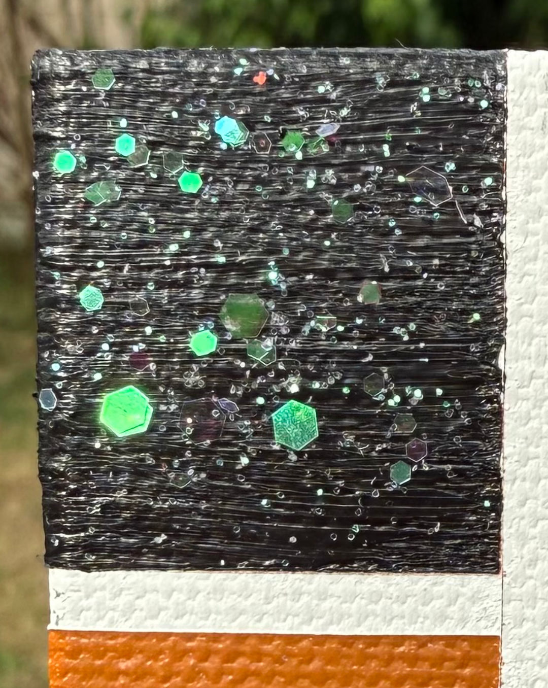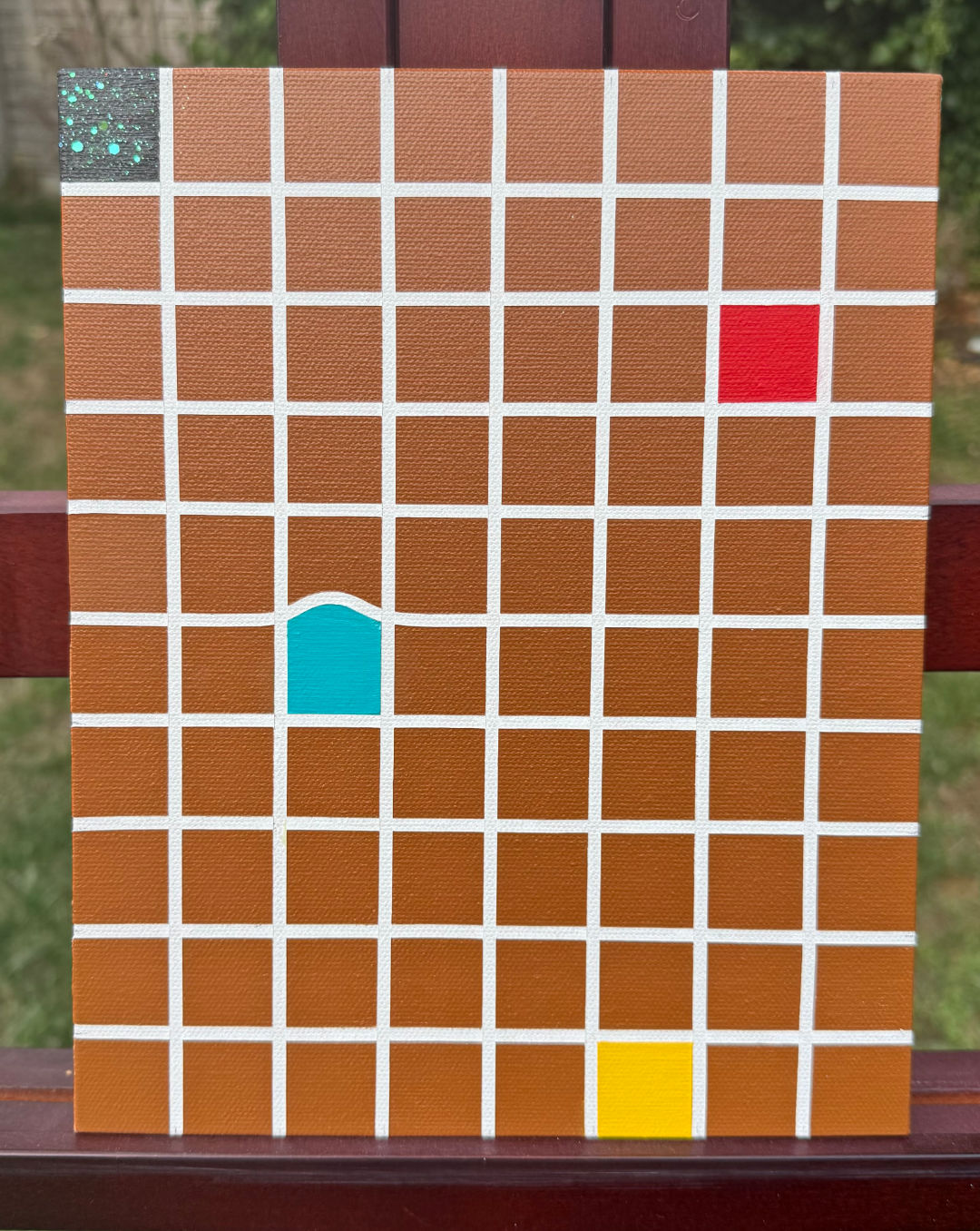 Acrylic paint and spray paint on canvas board. Small square has added glitter